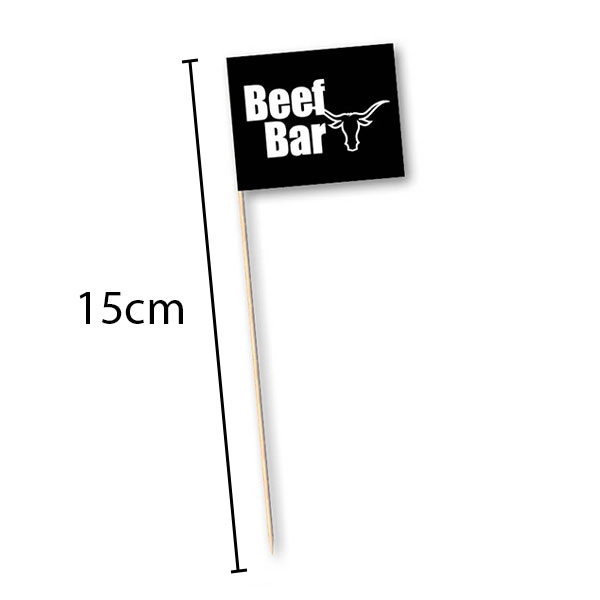 Unsere Burgerpicker sind nicht nur funktional, sondern auch ein Blickfang auf jedem Teller – und das zu einem erschwinglichen Preis. Mit dem Druck in Schwarz auf Weiß vermitteln sie deine Unternehmensidentität und ziehen die Aufmerksamkeit deiner Gäste auf sich. So bleiben deine Burger nicht nur im Gedächtnis deiner Gäste, sondern sorgen auch dafür, dass deine Marke in Erinnerung bleibt.